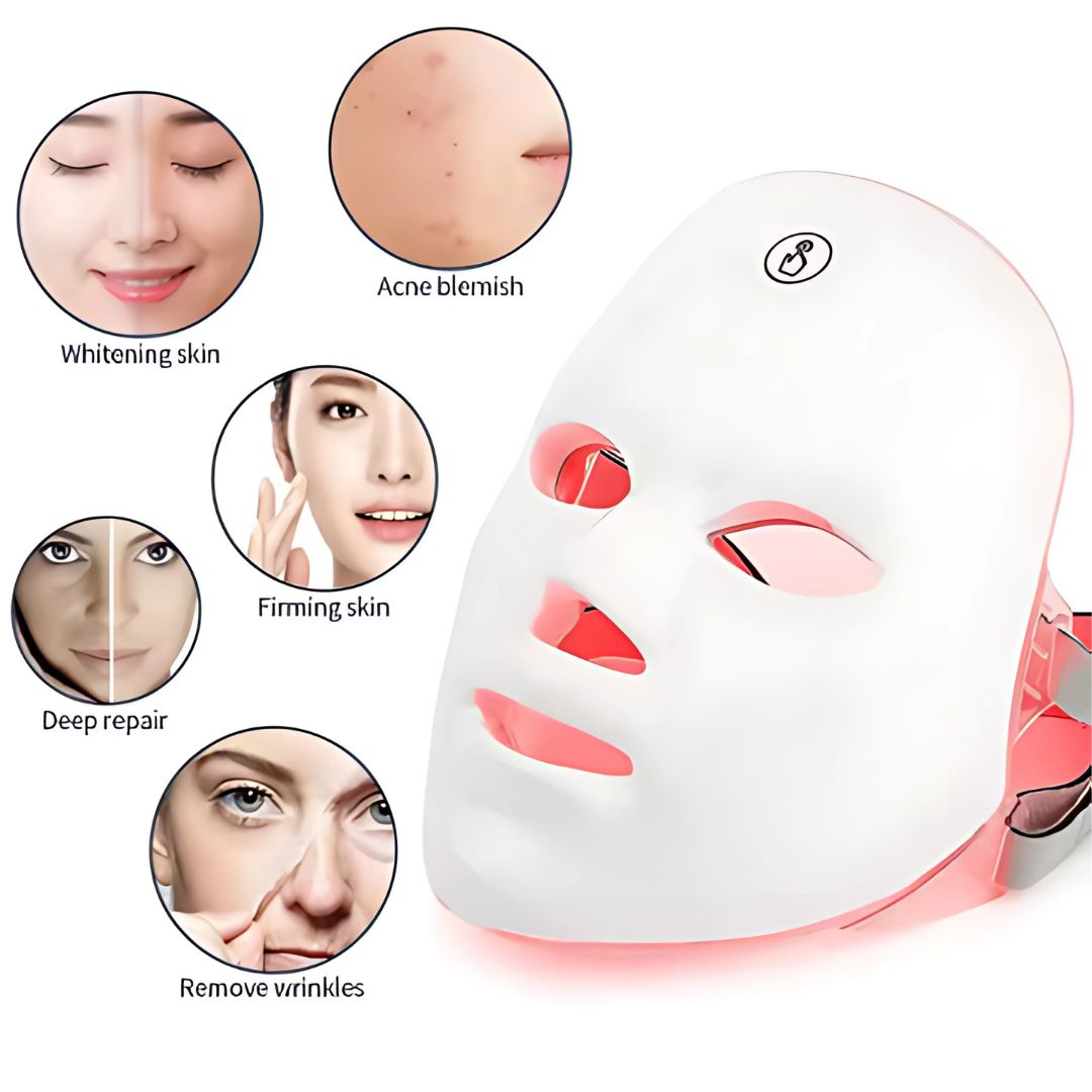 - 7-Color LED Light Therapy: Each color targets specific concerns, from acne reduction (blue) to skin firming and anti-aging (red).